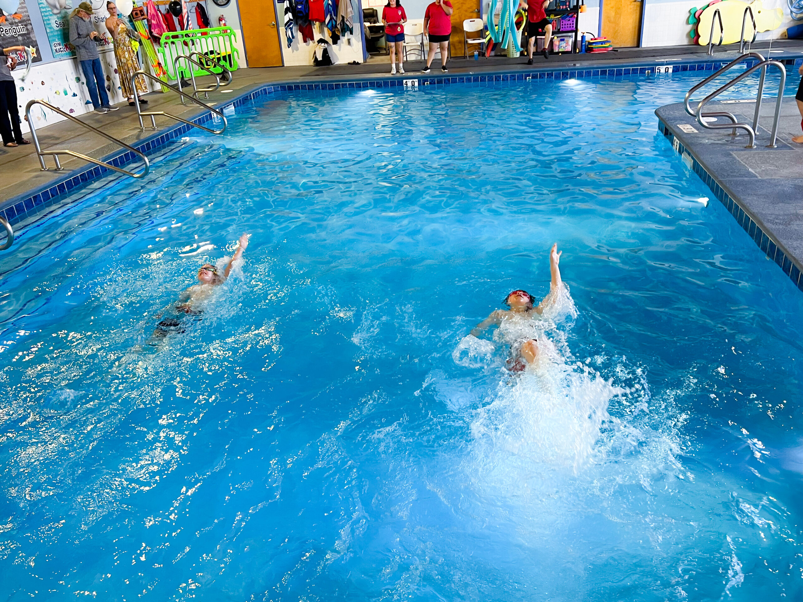 Sharks will build on endurance, begin the introduction to competitive rules and regulations, and work on advanced technique refinement for every stroke. Students must be able to demonstrate adequate endurance, flip turns with freestyle and backstroke, an improved pace with every stroke, and correct technique for every stroke. In addition to our standard water safety and survival practice, students are introduced to the competitive side of swimming with pre team workouts. Students will be swimming full length laps to increase physical strength and endurance while perfecting stroke technique.